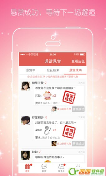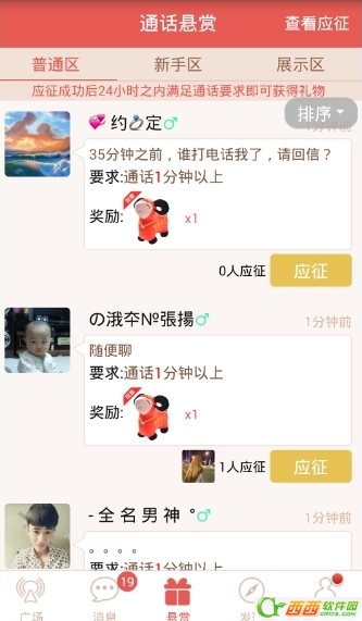 4、在“悬赏”里面可以应征别人的悬赏,也可以自己发布悬赏与更多的人聊天