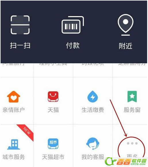 1、打开自己手机里支付宝进入菜单里的“更多”