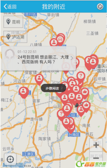 5、进入某一线路,在地图一栏,可以看到附近想去这条线的人以及他们发布的信息,随时随地方便约伴交流。