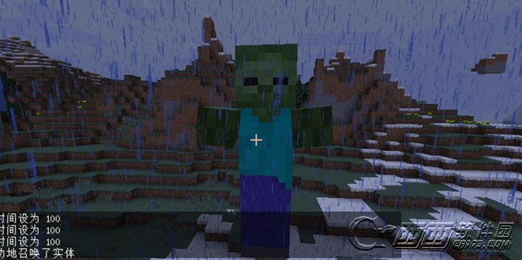 我们在输入框直接输入这个指令,然后回车,就能看见从天而降的僵尸巨人了。用这一方式的话,我们容易卡在僵尸内部,不过可以直接走出来。