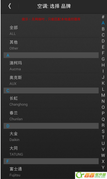 2、找到对应的空调品牌。