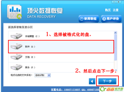 2、选择被格式化的盘符,然后点击下一步。