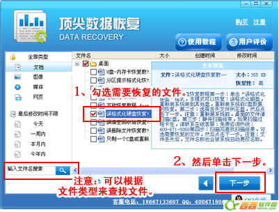 4、扫描完查找扫描结果,勾选需要恢复的文件,然后点击下一步。