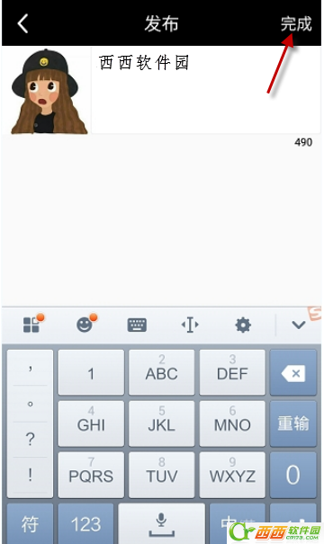 4、然后输入你想要发布的文字信息。点击右上角的完成,就能够发布了。