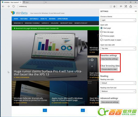 然后是突出显示了“清理浏览数据”功能,鉴于用户对此项功能较为重视,微软在新版中特意用了大字号,并且加粗了字体,以便让用户更加方便的找到该选项。