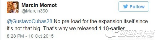 不幸的的是,这款DLC不提供预载选项,CD Projekt Red社区经理Marcin Momot在推特上透露。