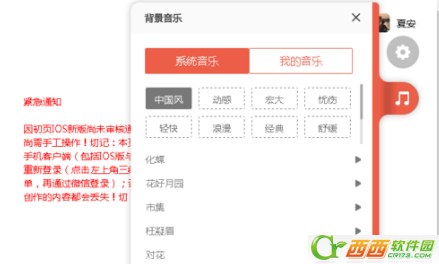 5、如想要添加音乐,可以点击右边的音乐,这里有模板,也可以自己上传