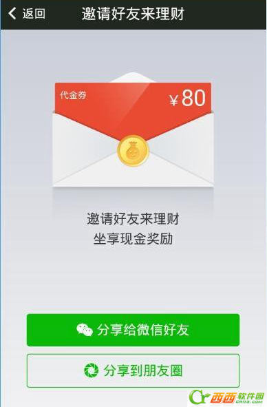 3、在邀请好友来理财页面中,用户只需要分享链接到微信好友和朋友圈,当朋友赚钱了,你也可能获得对应的提成哟,具体规则如下图。