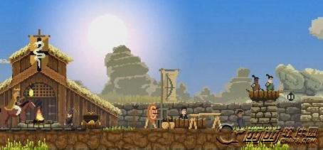 出了石堡后可以在石堡墙上买盾牌,最多四面,这玩意儿可不是装饰品,平民穿上就成了重装步兵,被敌人打个几下也不会掉装备(不是无敌!),还会把三个猎人(每个重装兵)变成弓箭手(可以看到衣服变了,似乎也更耐 操?),弓箭手不会出去打猎,而是一直跟着重装步兵。所以出重装的时候想好,一次出太多就没人打猎了……同时盾牌在哪边买的重装兵会去哪边守。