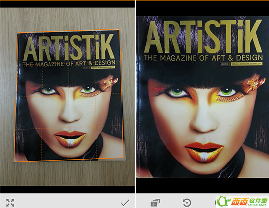你只需将手机摄像头对准想要扫描的对象,如文件、杂志、名片和便条等等,doc Scan会自动侦测边角的位置并将角度调整至最佳。当然你也可以手动进行调整。为了调整方便,doc Scan还支持缩放功能。如果手机配有LED补光灯的话,在扫描界面的上方还会显示一个闪光灯图标,不过还是建议大家尽量避免使用补光灯,因为效果并不理想。