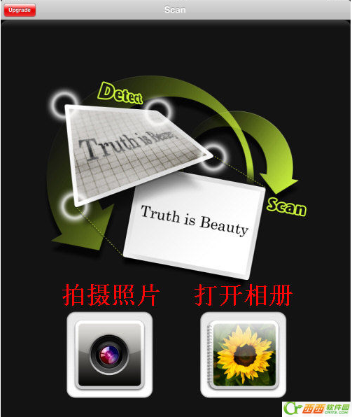 打开软件,我们选择左边的拍照按钮进行拍摄。你也可以从右边的按钮提出相册内的图片。