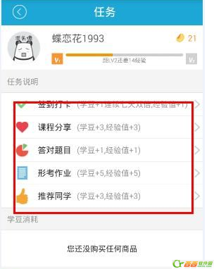 你可以通过签到、课程风险、答题等任务赚取学豆