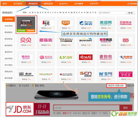 1.点击进入【商城返利】页面,找到您要进入的商城,点击进入该商城网页直接购买即可