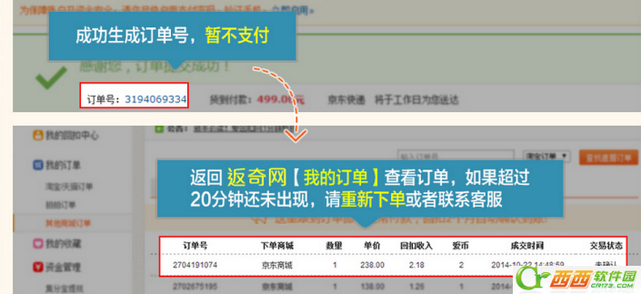 2.生成定单,您可先不支付,回到返奇网追踪【订单编号】