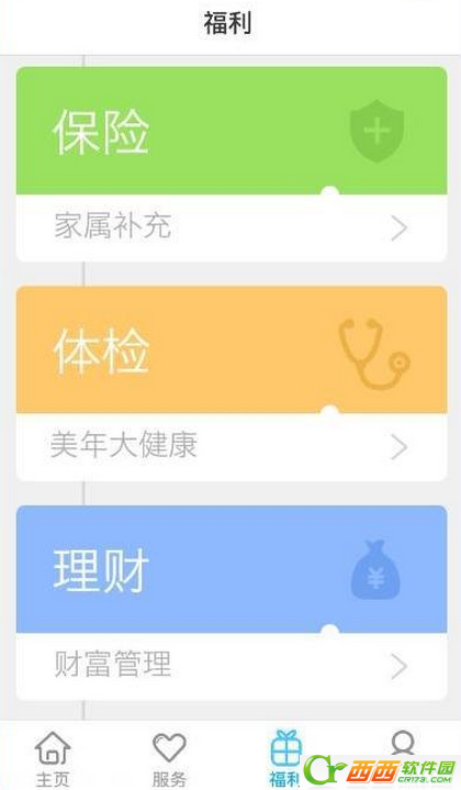 4、进入到福利界面,即可享受保险、体检、理财等福利哟。