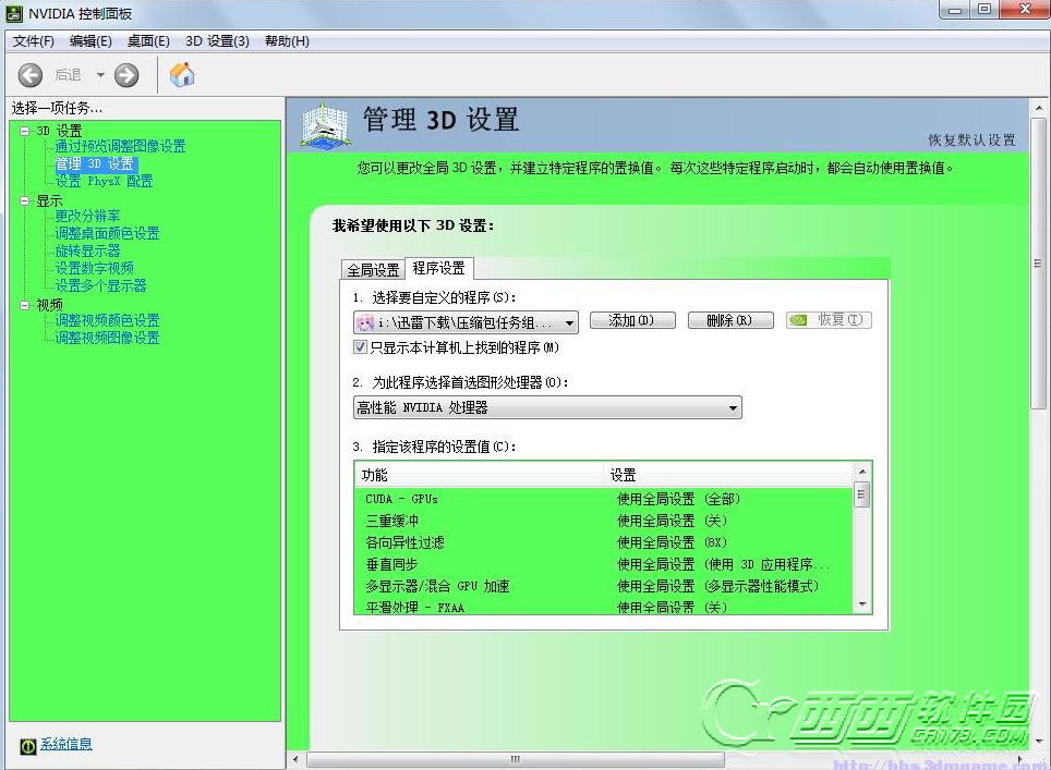 N卡的在“选择自定义程序”那里点“添加”选择游戏主程序。后不出现(ps:机型存在差异。)