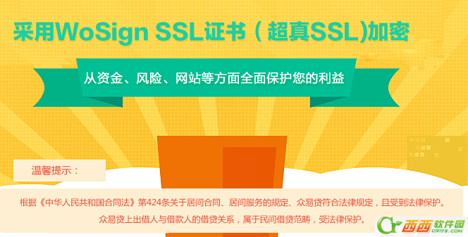 众易贷平台程序系自主研发,并多次测试完善之后才正式上线。交易系统采用国际标准的SSL安全加密技术保障数据信息安全,并对所有数据信息定期进行在线备份和人工备份双保险,防止交易信息的丢失。同时配合手机短信动态码验证,让您的交易更加安全,更有保障。