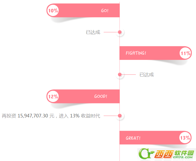储信贷“火柴计划”,取“众人拾柴火焰高”之意,加入的投资者越多,产品的收益越高。据了解,随着融资总量的增加,“火柴计划”的预期年化收益率分为四个阶段:10%—11%—12%—13%,也就是说,10000元的投资,单月收益最高可达114元,是活期存款利息的39倍,在同类P2P投资理财产品中“独树一帜”。