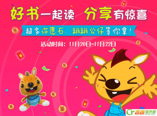 袋鼠跳跳童书app是一款非常专业的儿童教育类应用软件,袋鼠跳跳童书拥有海量适合不同儿童年龄段的童书,近日袋鼠跳跳童书app还推出了好书一起读、分享有惊喜的活动,那么袋鼠跳跳童书许愿石、跳跳公仔怎么得,下面小编就给大家带来袋鼠跳跳童书分享有惊喜活动攻略。