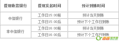2. 其它提现收费标准: