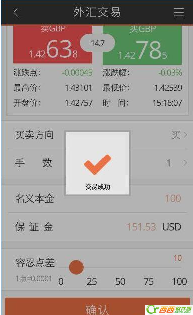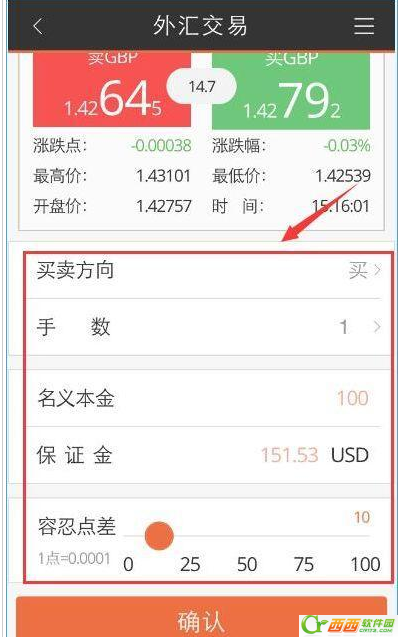 4、然后确定买卖方向,手数、名义本金、保证金及容忍点并,再点击确认即可购买成功。