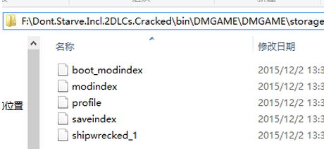 当然,也有时候会是在游戏根目录,游戏启动程序所在的那个文件夹,比如这里的X:\Dont.Starve.Incl.2DLCs.Cracked\bin\DMGAME\DMGAME\storage