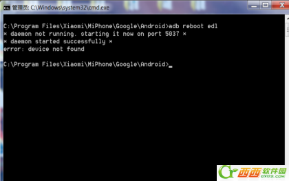西西小编提醒:不能进fastboot,要在开机输入时指令cd C:\Program Files (x86)\Xiaomi\MiPhone\Google\Android