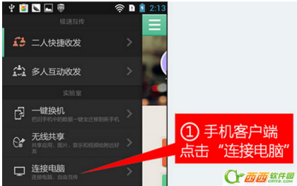 首先在手机的导航界面上,点击“连接电脑”
