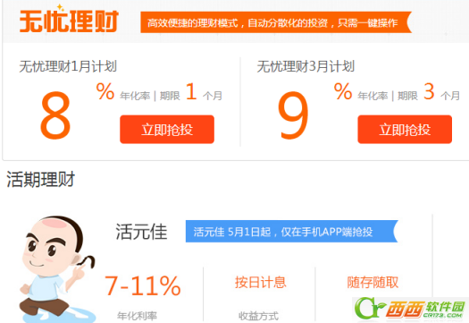1、活期理财:7%-11%收益,随存随转,秒杀“宝宝帮”;