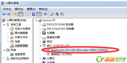 如果以上方法无法解决问题,则打开设备管理器,检查“端口(COM和LPT)”节点下的设备,检查设备”Qualcomm HS-USB QDLoader 9008“是否存在。