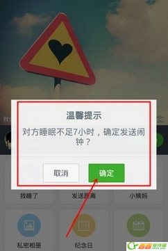 发送闹钟的前提是对方登陆小恩爱,并且状态为“我睡了”!