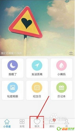 登陆小恩爱,进入聊天的页面,点击主页面上的心形图案。