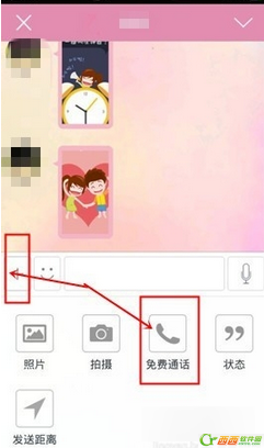进入聊天页面之后,点击+号,选择“免费通话”!