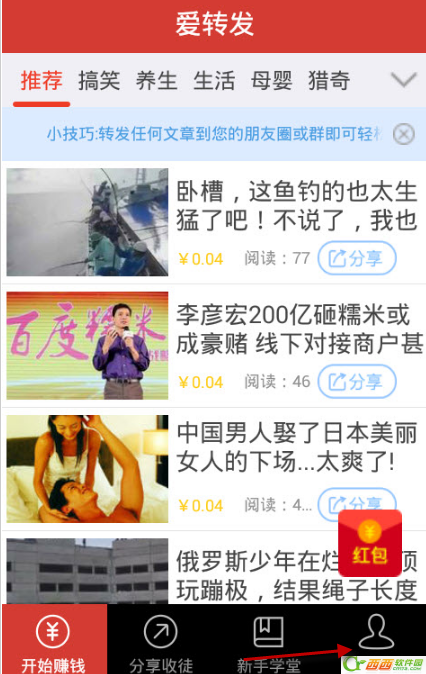西西小编要提醒大家的是,爱转发需要余额满20元才可以提现的哦