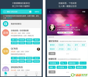4. 个人中心:标签化描述你的爱好特长与技能,让人第一眼就记住你;将喜欢的公司或职位一键收藏。