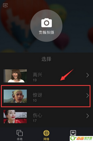 1、打开软件后可以点击相机直接拍照,同时也可以选择本地图片或网络图片哦,而且网络图片有更多趣味。