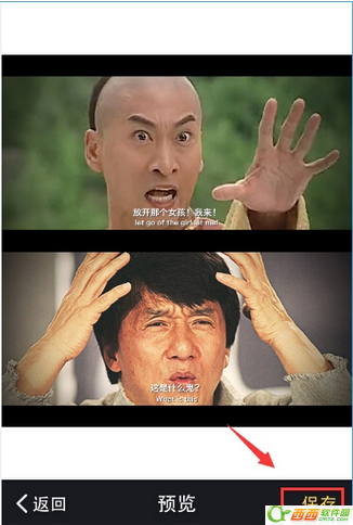 5、点击主编辑页面的预览即可预览刚做的图片,点击保存即可保存到你的相册中。