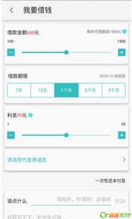 点击首页的“闪电借款”按钮,或点击咖咖页面右上角的“我要借款”按钮,滑动选择借款金额、利息、借款期限、是否发布到“校友圈”等,即可迅速发起借款。