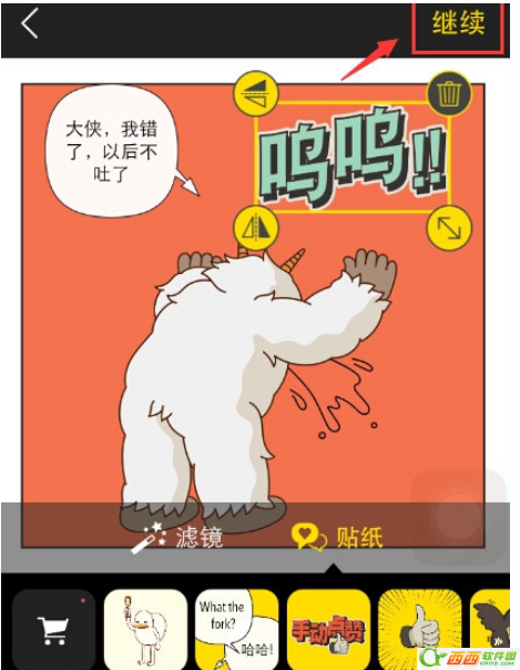 3、进入后,即可以看到这个图片的一些滤镜及贴纸,用户可以删除这些滤镜,然后重新制作一些好玩的滤镜或贴纸。