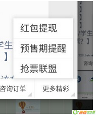 点击下方的“更多精彩”,在弹出的菜单中选择“红包提现”命令。