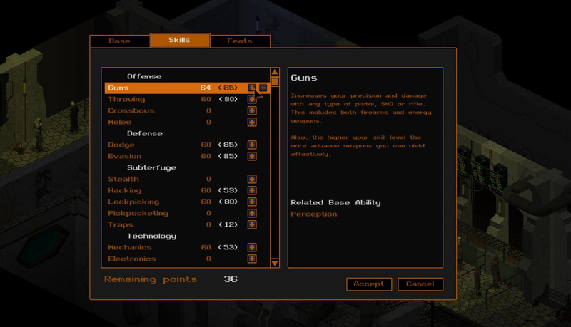 所以,和大部分的RPG包括TRPG一样,在游戏开始时,问问你自己,你想玩什么样的角色,你能玩什么样的角色,以及你爱玩什么样的角色?譬如我什么都能玩不挑食但是我偏好远程,认为肉搏是在扮演智力3角色时的首选(因为点数不够!),那么就会先剔除近战,考虑游戏中没那么多雷给你丢而投掷还有可怕的4回合冷却(加了PERK后是-1和特殊-2,依旧很长),所以投掷也去了,只剩灵能,枪械和劲弩。最后本着第一次游戏求爽快开局,我最后选了枪械