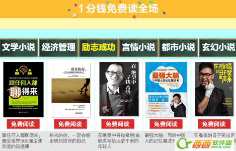 苏宁阅读提供了包括文学作者、管理书籍、成功学著作、言情小说、都市小说、玄幻小说等诸多书籍参加“1分钱免费读全场”活动,统统1分钱,全部1分钱