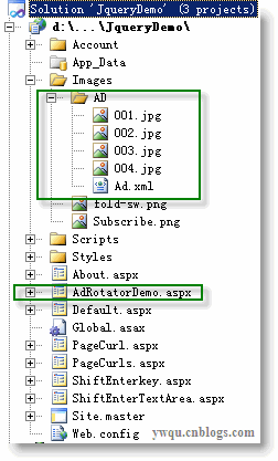 新增四张图片和Ad.xml文件,供AdRotator控件调用。