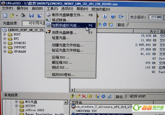 然后点“工具”,“加载到虚拟光驱”
