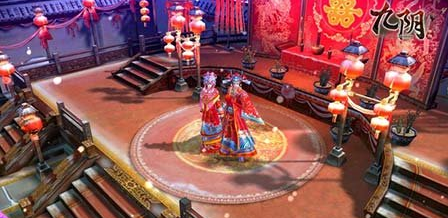 欲要喜结连理的新人,需要两人组队前往结婚的指定场所,通过与媒婆对话,完成媒婆的要求,并选择相应的婚礼选项,并可以燃放烟花来庆祝新婚,同时还可购买喜糖分发给在场宾朋。两名玩家婚礼达成之时会进行全服通告,所有玩家都可以对新人送上祝福。