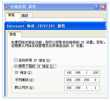 右击桌面网上邻居→选择“属性”→在网卡对应的“本地连接”选择“属性”→“常规”→“Internet协议(TCP/IP)”,查看其“属性”: