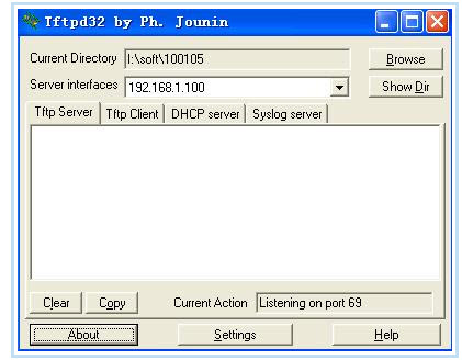 2,双击打开升级包中的tftpd32.exe文件,并确保在整个升级过程中该软件均处于开启的状态;