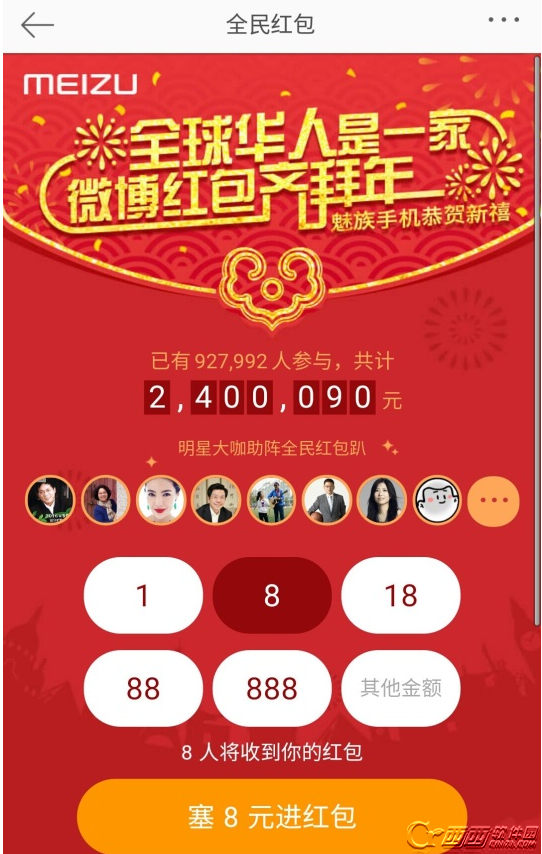 从2月1日起,微博将陆续推出小年、除夕和情人节三个专场,数百位人气明星携手知名企业,每天8点准时开始发红包。