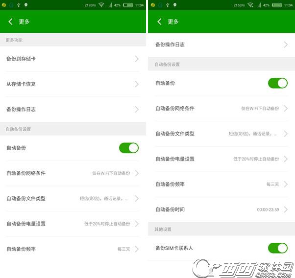 在更多中还有其他的一些设置,比如自动备份,石头哥哥建议开启自动备份功能,以防万一,同时卫星们也可以根据流量的多少,设置在什么网络状况下备份,石头哥哥选择的是WiFi下自动备份,卫星们可以自由选择: