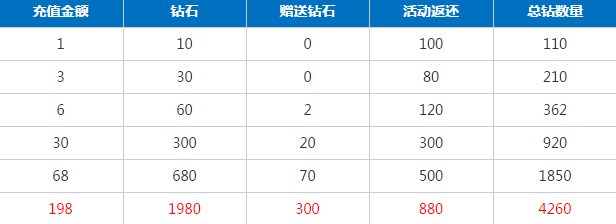 我认为,如果是小额充值,比较推荐的是6块钱362钻石的这个档位,对于平民玩家来说会比较划算一些。如果是大额充值,那么198块钱4260钻石,是非常不多的选择。